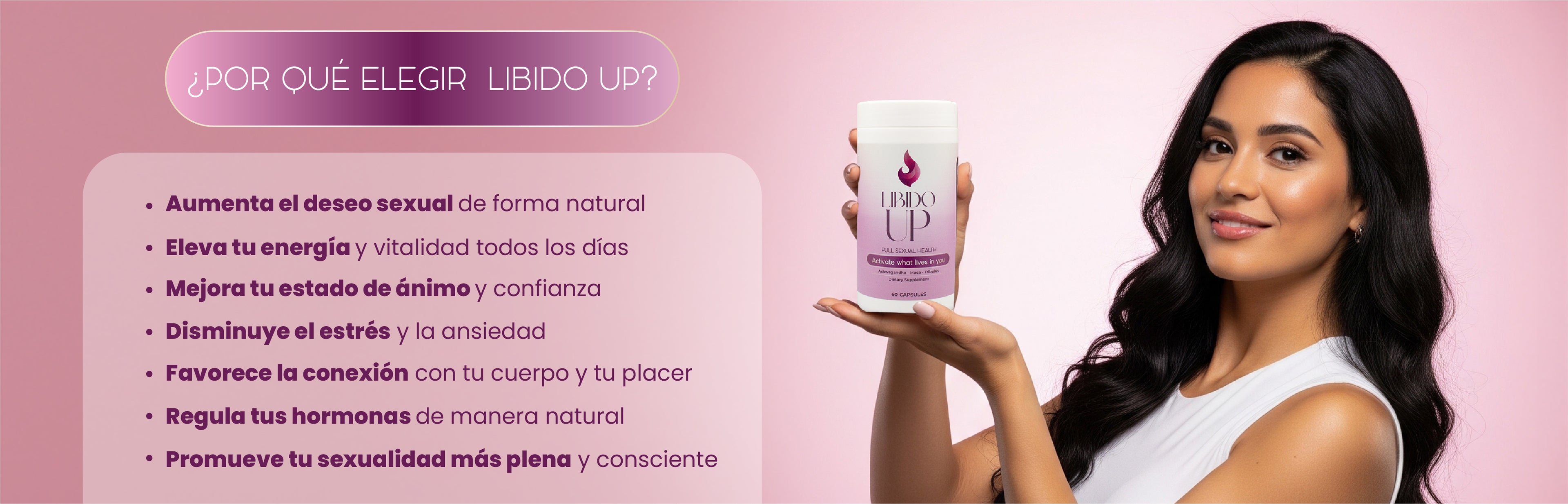 Me sentía frustrada por no tener deseo.Siempre lo justificaba con el estrés, pero yano quería vivir así. Libido UP me ayudó aentender que mi cuerpo no estaba fallando, solo necesitaba apoyo. Hoy me siento más viva que nunca.